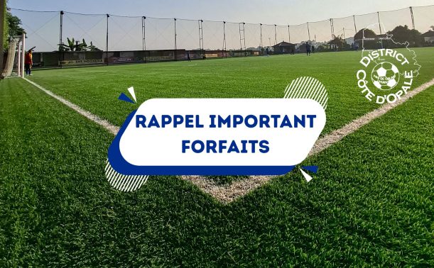 Afin d’éviter tout litige concernant la prise en compte officielle d’une déclaration de forfait ainsi que pour permettre une organisation correcte des déplacements des équipes et des arbitres (et, le cas échéant, de leur défraiement), nous vous rappelons l’importance de respecter strictement la proc...
