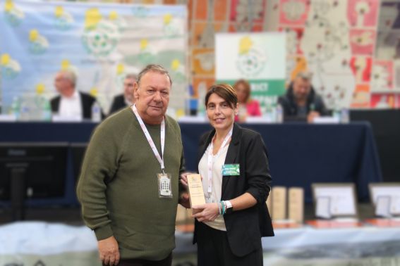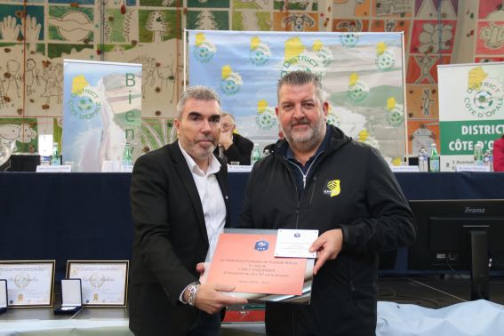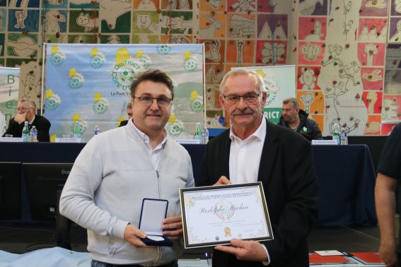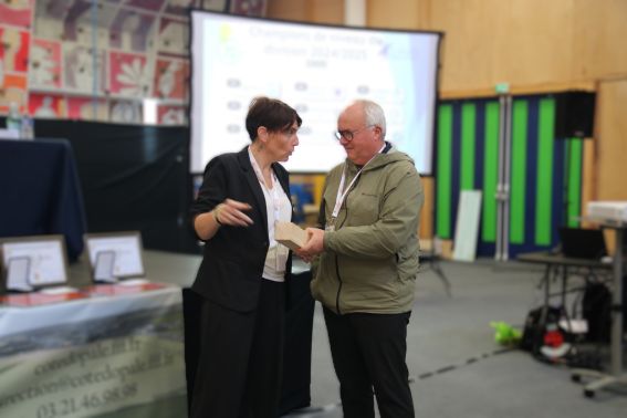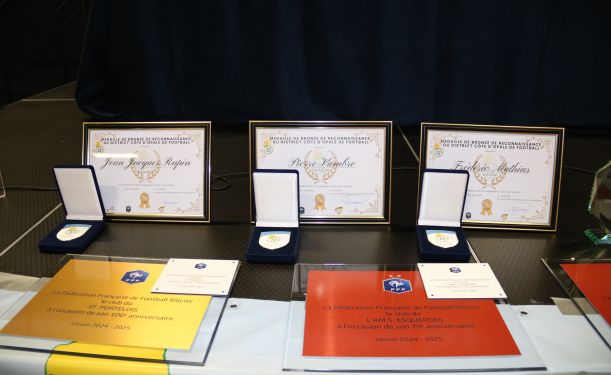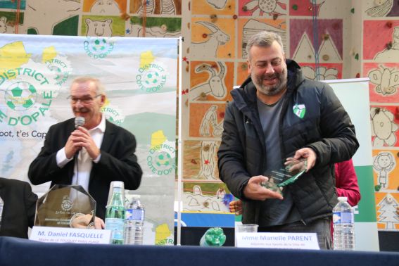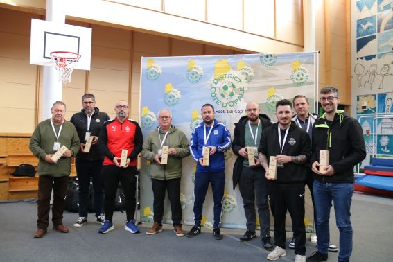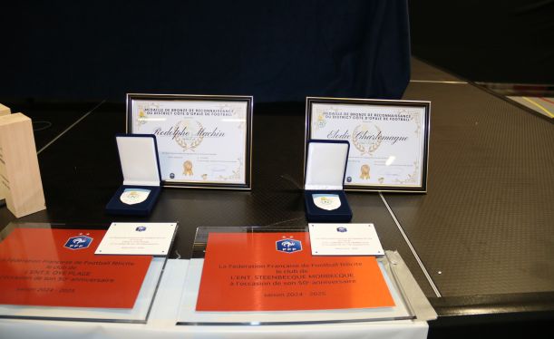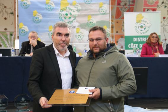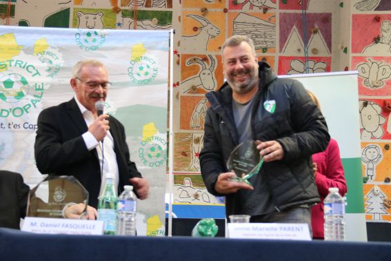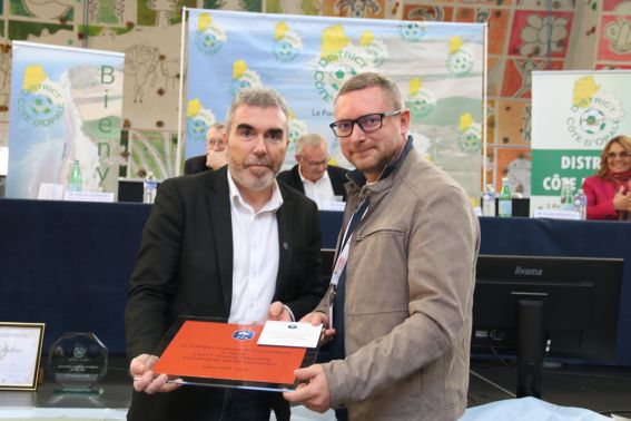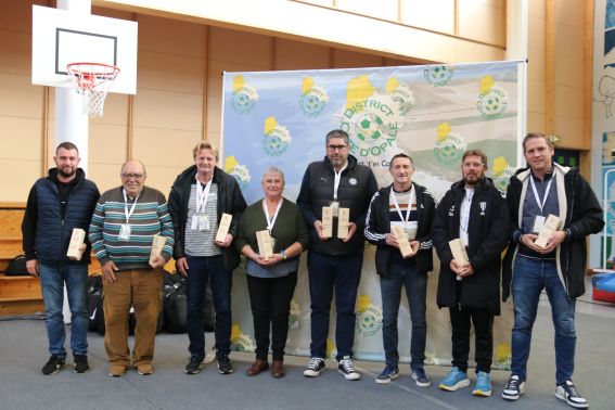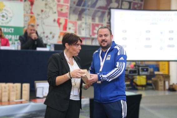 La matinée s’est poursuivie avec la remise des trophées aux champions de la saison 2024/2025, un moment fort valorisant pour les clubs récompensés. Cindy Vaesken, Présidente de la Commission Événementielle, a procédé à chaque remise de trophée. Les candidats à l’élection du Comité Directeur (mandat 2024-2028) ont ensuite été présentés avant le déroulement du vote, au terme duquel les deux candidats, Maxime DESOMBRE et Sylvie DELETOILLE, ont été élus. L’opération Octobre Rose a également été mise en lumière, notamment avec une remise de récompenses pour les 21 clubs ayant répondu à l’appel lancé par le District, et le District associé aux clubs féminins des brassages ont offerts un chèque de 2 000 € à l’association Lions Club Berck – Le Touquet en faveur d’Octobre Rose. Les vœux des différentes commissions du District ont ensuite été présentés : la réforme des compétitions séniors n’a pas été retenue, tandis que le vœu de la Commission des Compétitions portant sur la modification de l’article 9 de l’annexe 13 a été adopté, tout comme la réforme des championnats jeunes à 11. Enfin, des récompenses ont été remises aux dirigeants pour leur engagement au quotidien.