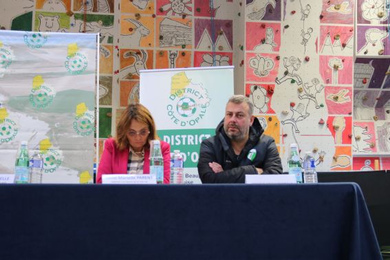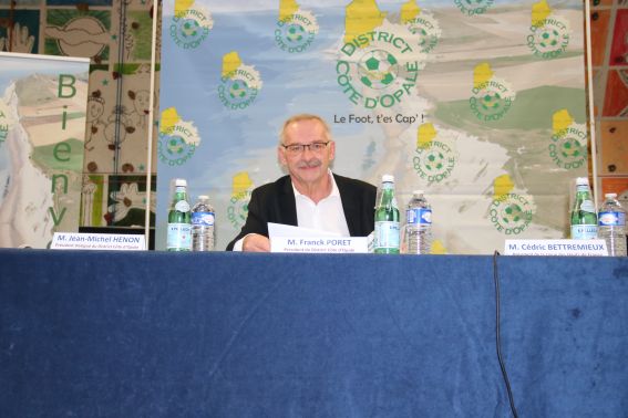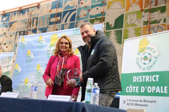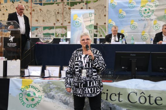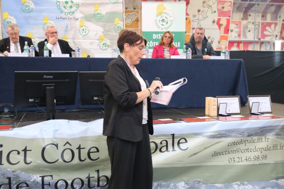 Avec la présence à la table d’honneur de : Monsieur Cédric BETTREMIEUX Président de la Ligue des Hauts de France – Madame Marielle PARENT Adjointe aux sports de la ville de Le Touquet Paris Plage – Monsieur Franck PORET Président du District Côte d’Opale – Monsieur Jean Michel HENON Président Délégué du District Côte d’Opale – Monsieur Patrick QUENIART Trésorier Général du District Côte d’Opale et Madame Véronique ROUSSE Commissaire aux comptes. Cette Assemblée Générale marquait d’ailleurs la dernière participation de Madame Véronique ROUSSE en tant que Commissaire aux comptes, celle-ci prenant sa retraite à l’issue de cette saison. Elle sera remplacée par Monsieur Pierric Henriquet dès le prochain exercice. L’ensemble du District a tenu à la remercier chaleureusement pour son travail, son professionnalisme et son accompagnement sans faille durant ces 27 années, saluant une collaboration précieuse et appréciée de tous.