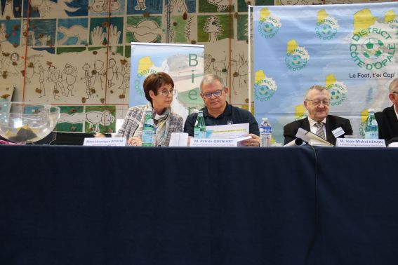 Nous notons également la présence dans cette salle de Madame Evelyne BAUDUIN, Présidente du District Artois et du Comité Départemental – Madame Nathalie DEPAUW, Présidente du District de l’Oise – Madame Pauline BLONDEAU, Membre du COMEX – Monsieur Fernand DUCHAUSSOY, Président honoraire de notre District – Monsieur Georges FLOURET, Président honoraire de notre District – Monsieur Jean-Marie BECRET, Président Délégué de la Ligue des Hauts-de-France – Monsieur Aymeric ANSEL, Secrétaire Général de la Ligue des Hauts-de-France – Monsieur Pascal POIDEVIN, Président du District de l’Aisne – Monsieur Chakib BACHIRI, Président du District des Flandres – Monsieur Pascal TRANQUILLE, Président du District de la Somme – Monsieur Stefan ISLIC, Président du District de l’Escaut, ainsi que nos partenaires : MM. Christophe CARON et Jérémy LECAILLE de la société Défis Sports+, Monsieur Daniel GAJNY de la société DG Buro, Monsieur Jérémy MUTEZ de la société Club Sport Pro, et Monsieur Bruno PETILLON du Crédit Agricole.