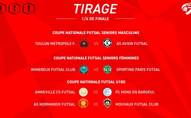 Le tirage des 1/4 de Finale de la Coupe Nationale Futsal Seniors M, Seniors F et U18G a eu lieu hier dans les locaux de la FFF.