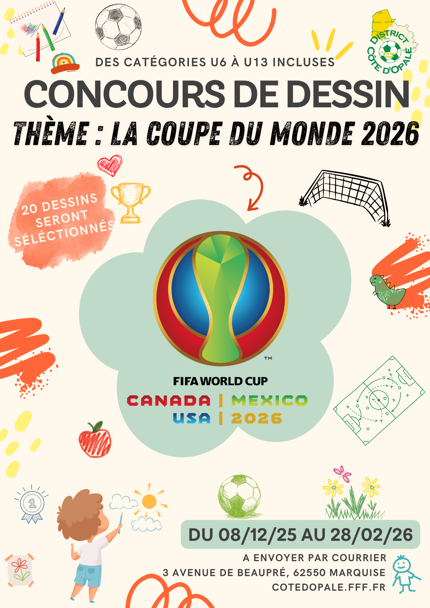 Le District Côte d’Opale lance un concours de dessin sur le thème « Coupe du Monde 2026 »!