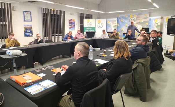 La formation « arbitres de club » s’est tenue le mercredi 19 novembre 2025 à Marquise, réunissant les candidats inscrits, auparavant appelés « arbitres auxiliaires » ou « arbitres prioritaires ». Organisée par le District, cette session avait pour objectif d’apporter aux participants les connaissances indispensables pour assurer la fonction d’arbitre en l’absence d’un officiel désigné sur une rencontre.