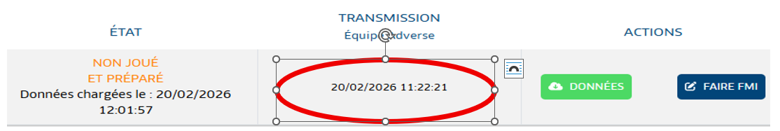 - le bouton « Données » devient vert. Si vous ne voyez pas de « Transmission de l’équipe adverse », alors recommencer ou contacter le club visiteur.