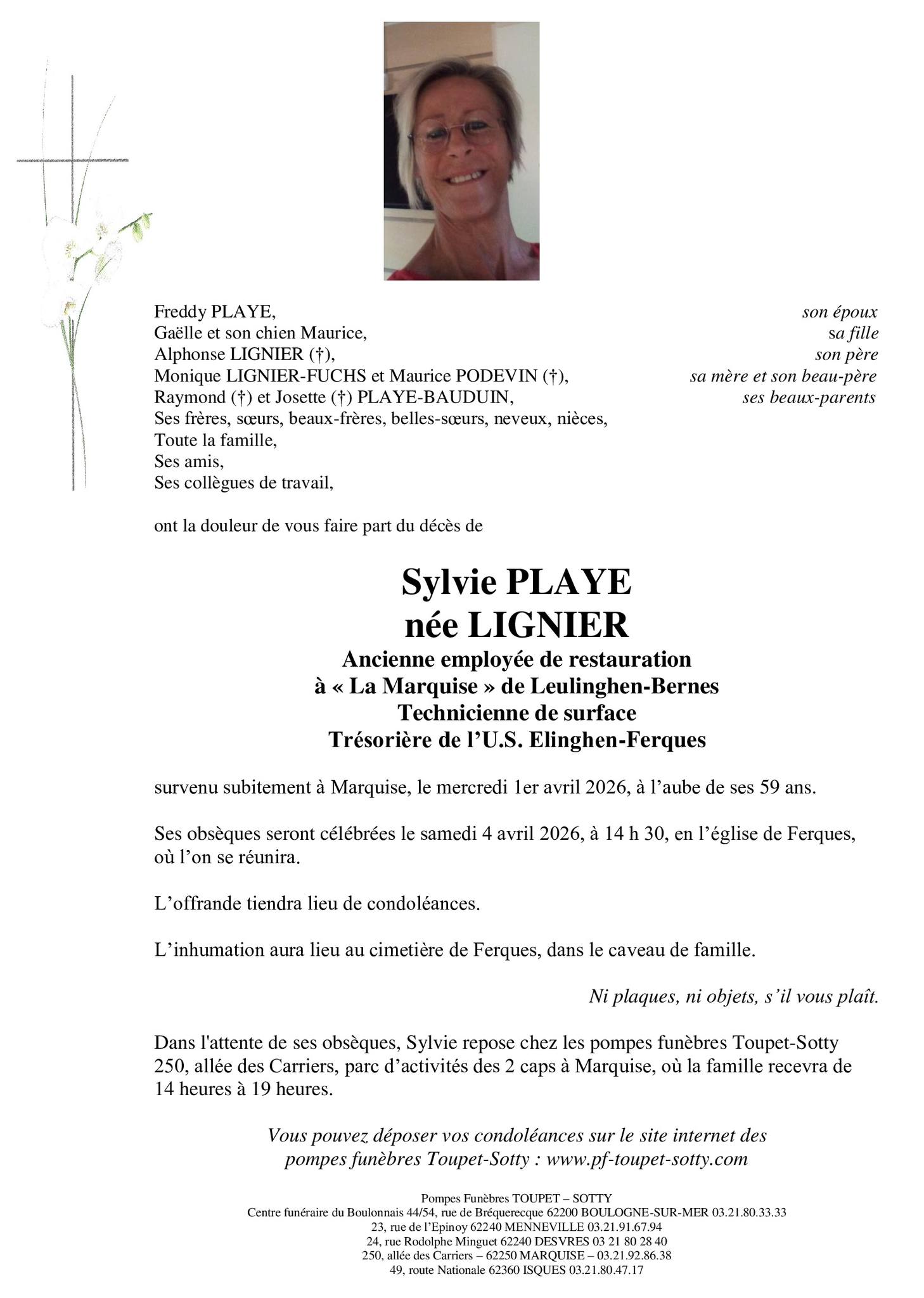 Nous avons appris avec tristesse le décès de Madame Sylvie PLAYE, épouse de Monsieur Freddy PLAYE, membre du Comité Directeur et de la CDA.