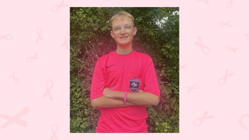 Hugo CLETON, jeune arbitre du district qui souhaite apporter son soutien pour Octobre rose en arbitrant ses matchs en maillot rose en soutien à la lutte contre le cancer.