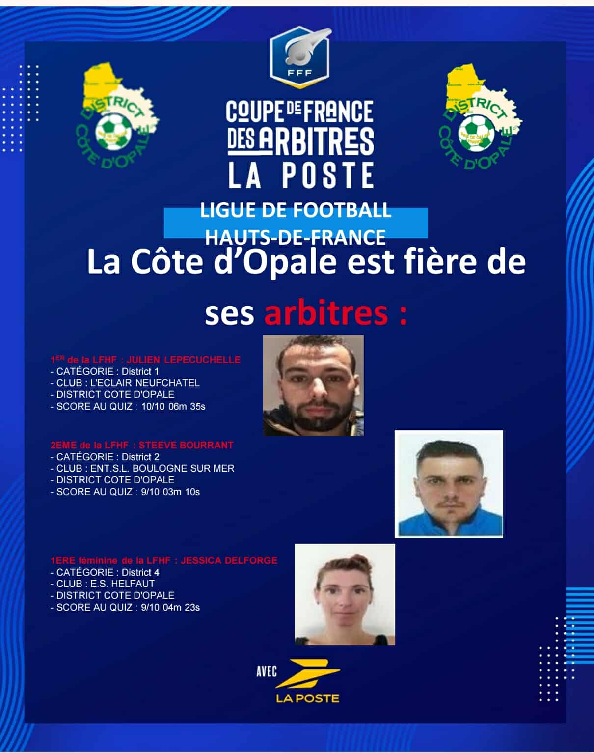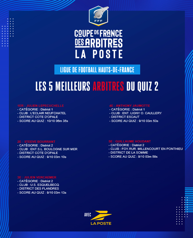 Le deuxième tour de quiz de la Coupe de France des Arbitres La Poste s’est terminé ce mercredi 22 octobre.